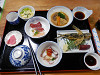 刺身はかつおとカンパチ 美味しい夕食にありつけ大満足