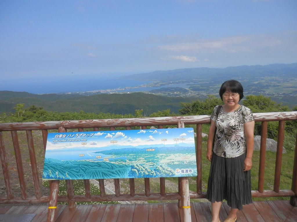 大佐渡スカイラインの最高地点(942m表示あり)からの展望