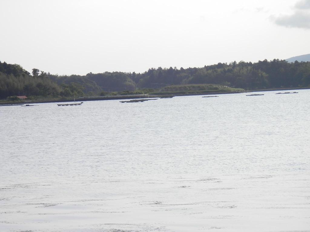 加茂湖と大佐渡の山々の眺めは見飽きない