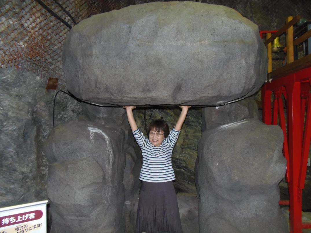 大きな鉱石を見つけ喜んでいる 佐渡金山では”酒飲みてぇ”と叫んでいたが、大違いだ