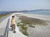 渚、白砂青松、快水浴:慶野松原海岸 夕日:西淡町