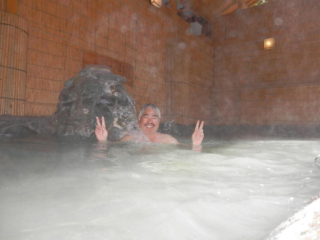 貸切状態の秘湯につかる ちょっとぬるめだが源泉に打たれて最高の気分