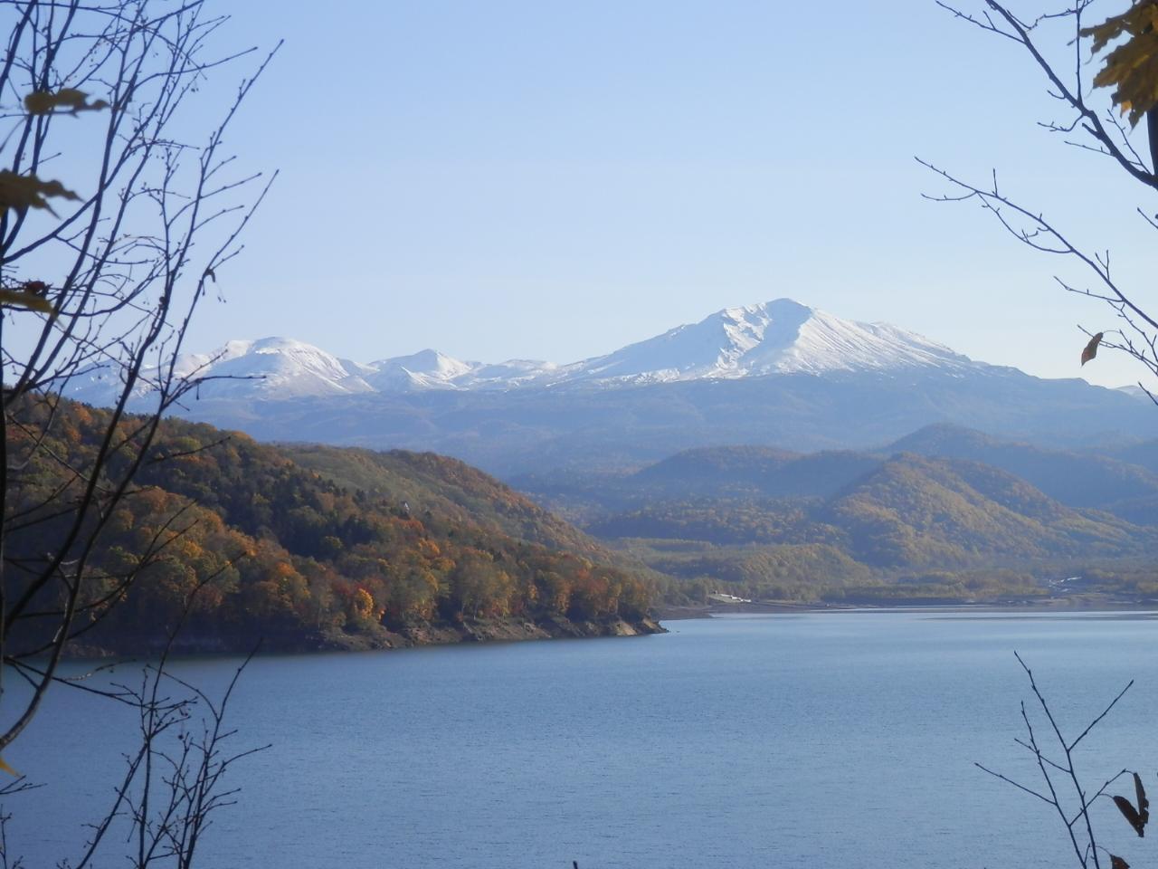 7:30忠別ダムからキレイに旭岳が見える 天気予報で日程を変更し、今日旭岳巡りにしたのが大正解となる