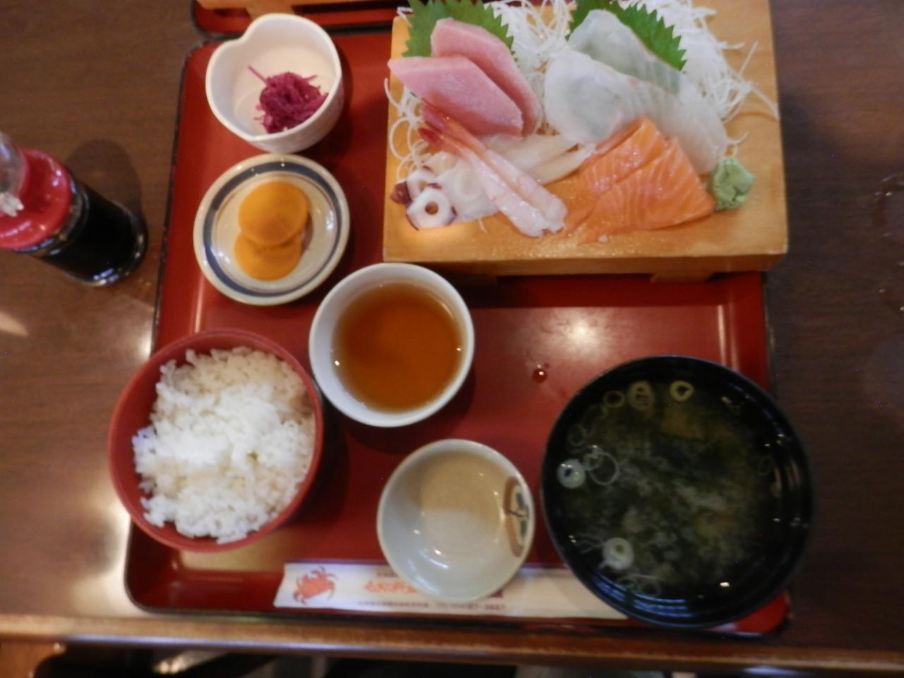道の駅の食堂は大食堂だが15じ半早々と終了 晩飯はこの寿司屋のカニ寿司にする