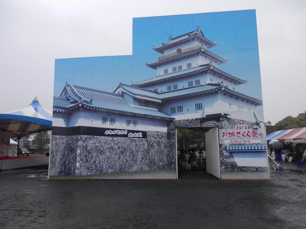ちょうど桜まつりをやっていたが雨で人出は少ない この看板を見て府内城の天守閣が無いのを知る