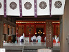 長い階段を上ると楼門から本殿のしめ縄が見えた