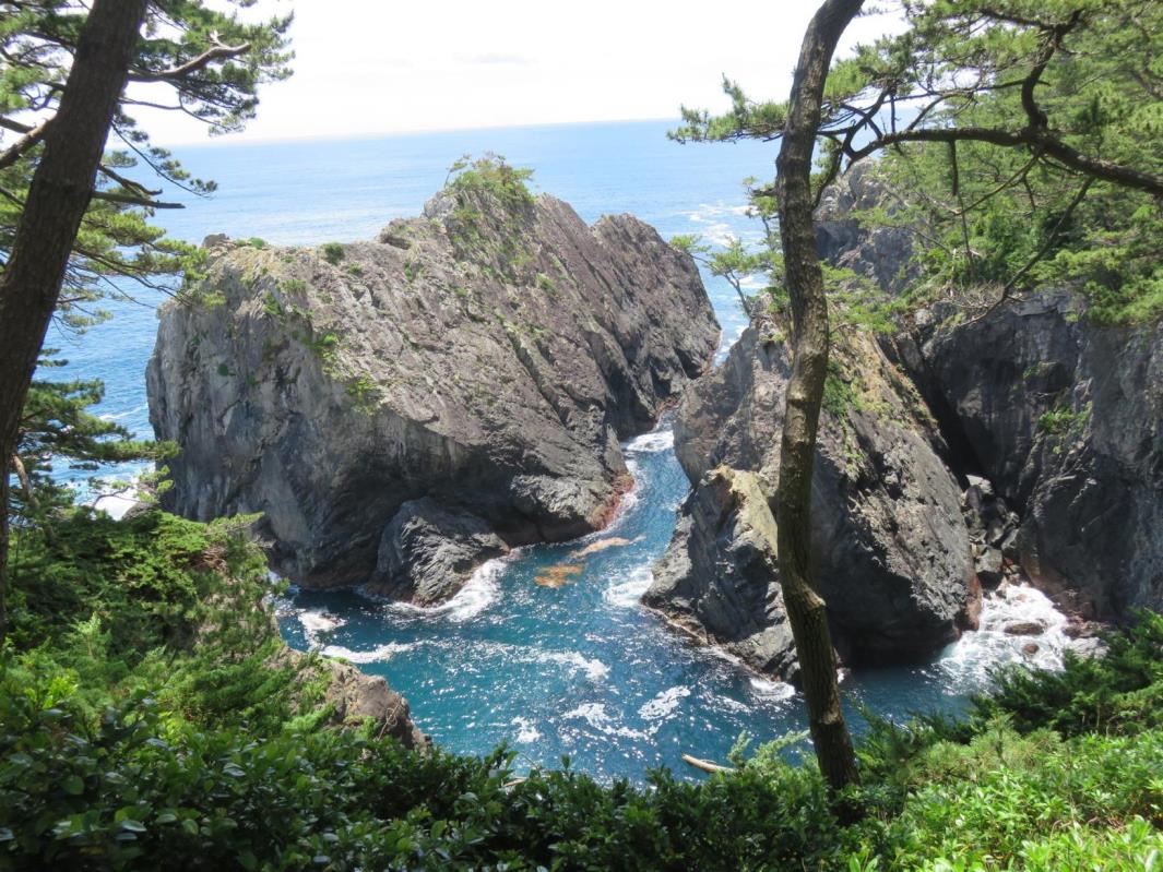 ここは岩場で津波の影響もなかったようだ 素晴らしい眺めに感動する