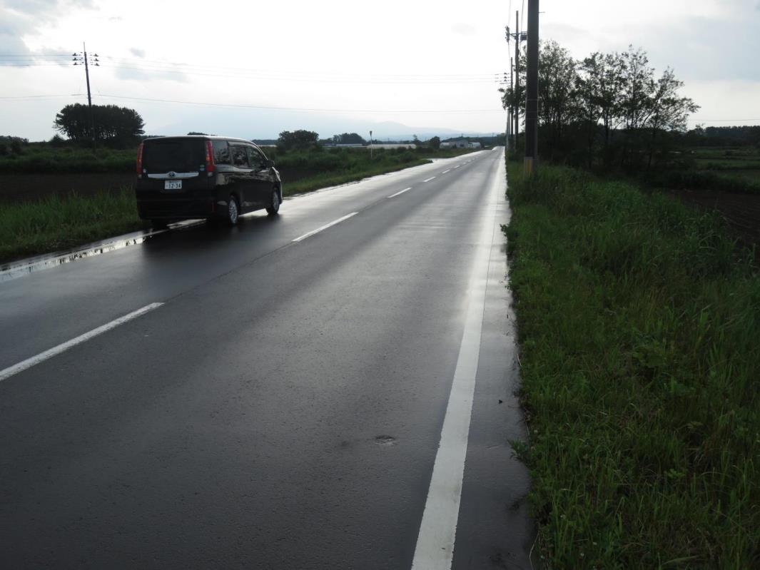 湿原の中をどこまでも真っ直ぐな農道が通る ちょっと北海道を思わせる景色