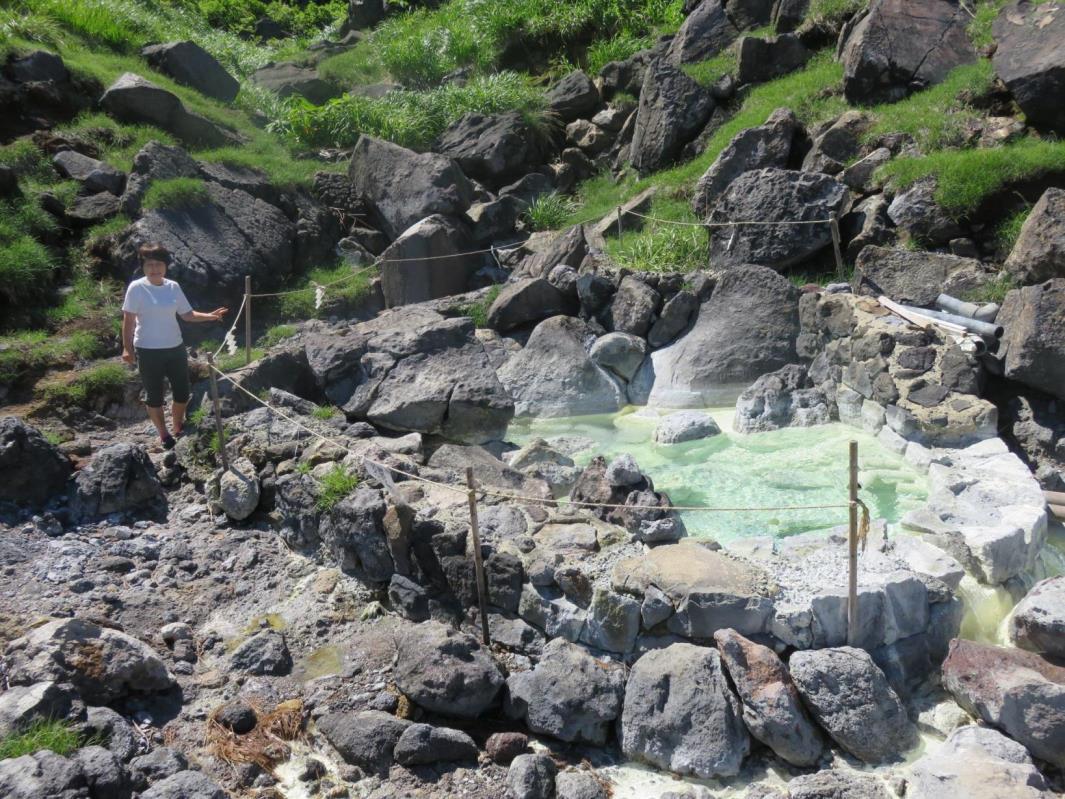 かなり熱い湯で、川の水と混ぜ合わせないと浸かっていられない