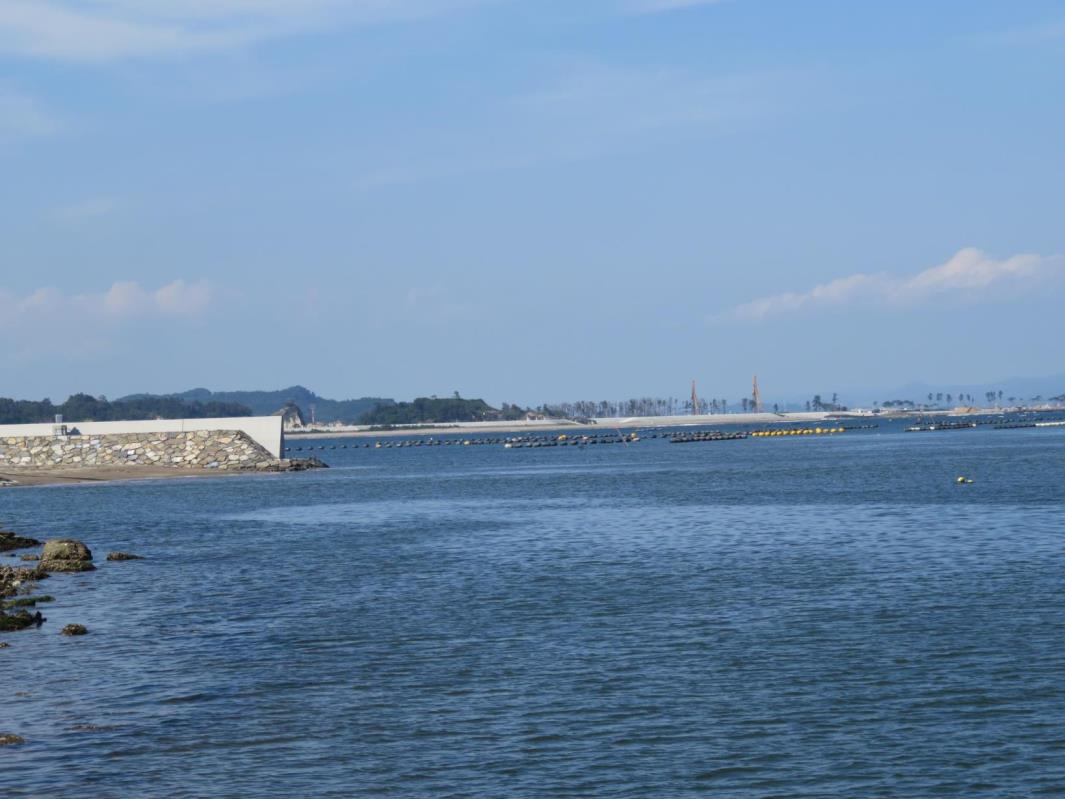 長い海岸線は工事中であり、100選の渚は大きな震災があったようだ