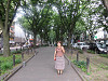 車道の中央が大きな木で覆われた歩道になっていて、とても感じが良い道