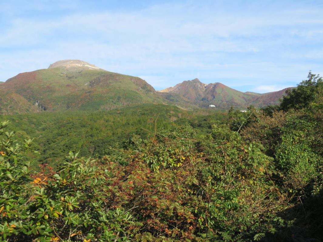 山頂が丸い山が那須連山最高峰の茶臼岳