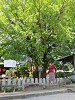 あじさい坂の下の随神門に一輪紫陽花が咲いていた たまたまあじさい坂を上がって行く人が写る