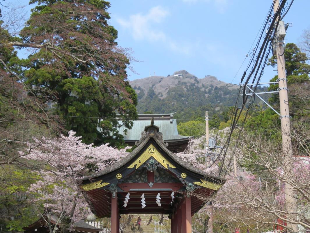 この車道で神社へ行けて100選碑があるの思ったが、神社と碑はもっと上のケーブルカー乗場の所