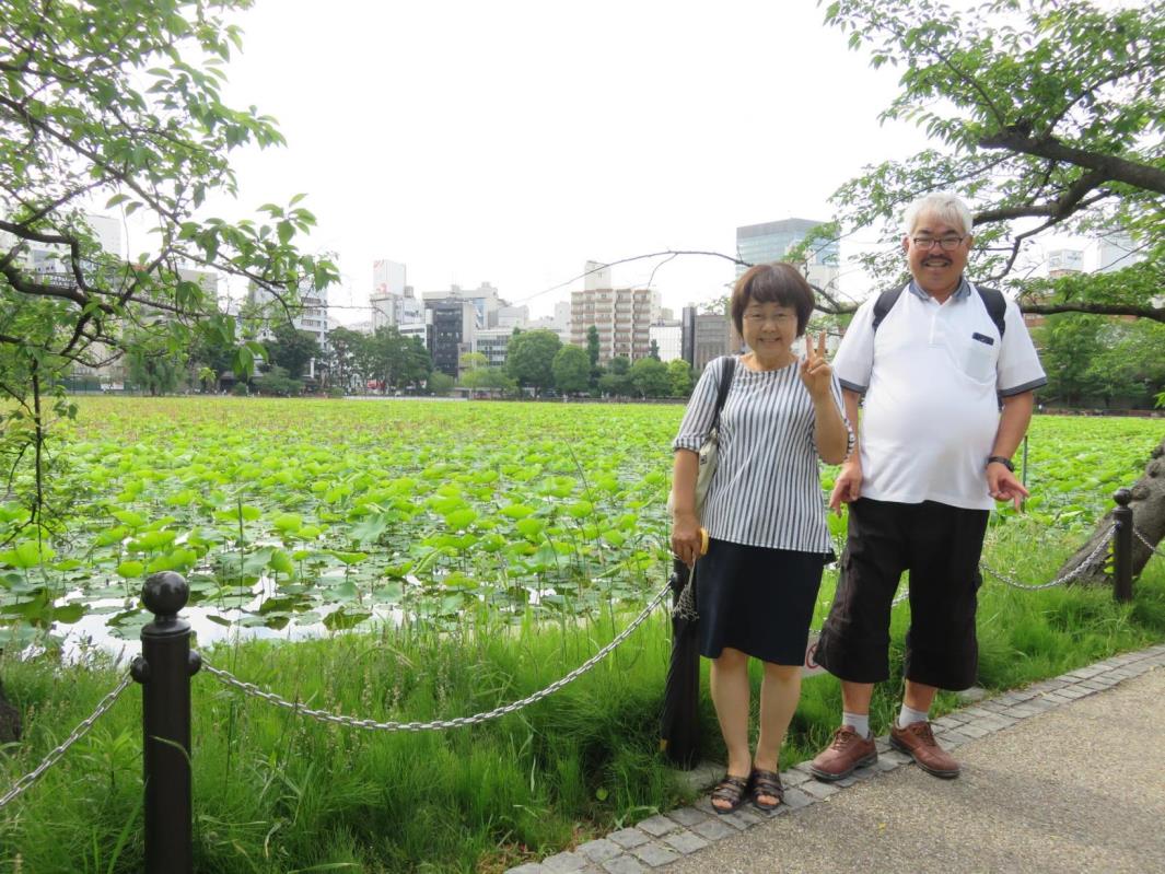一面ハスで覆われた不忍池 ハスの花が咲くのももう直ぐ、美しい景色が展開することでしょう