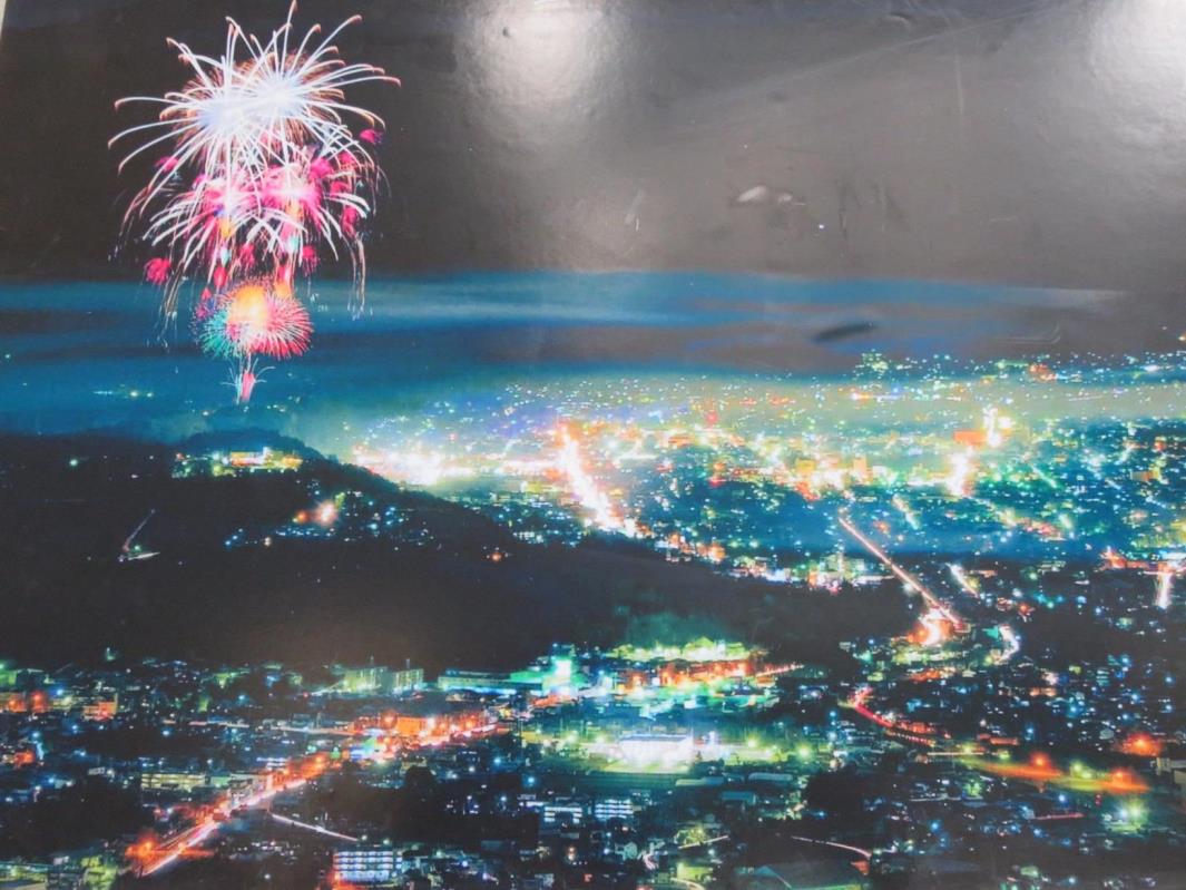 山の上の展示室に、秩父の夜景の写真あり