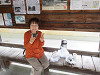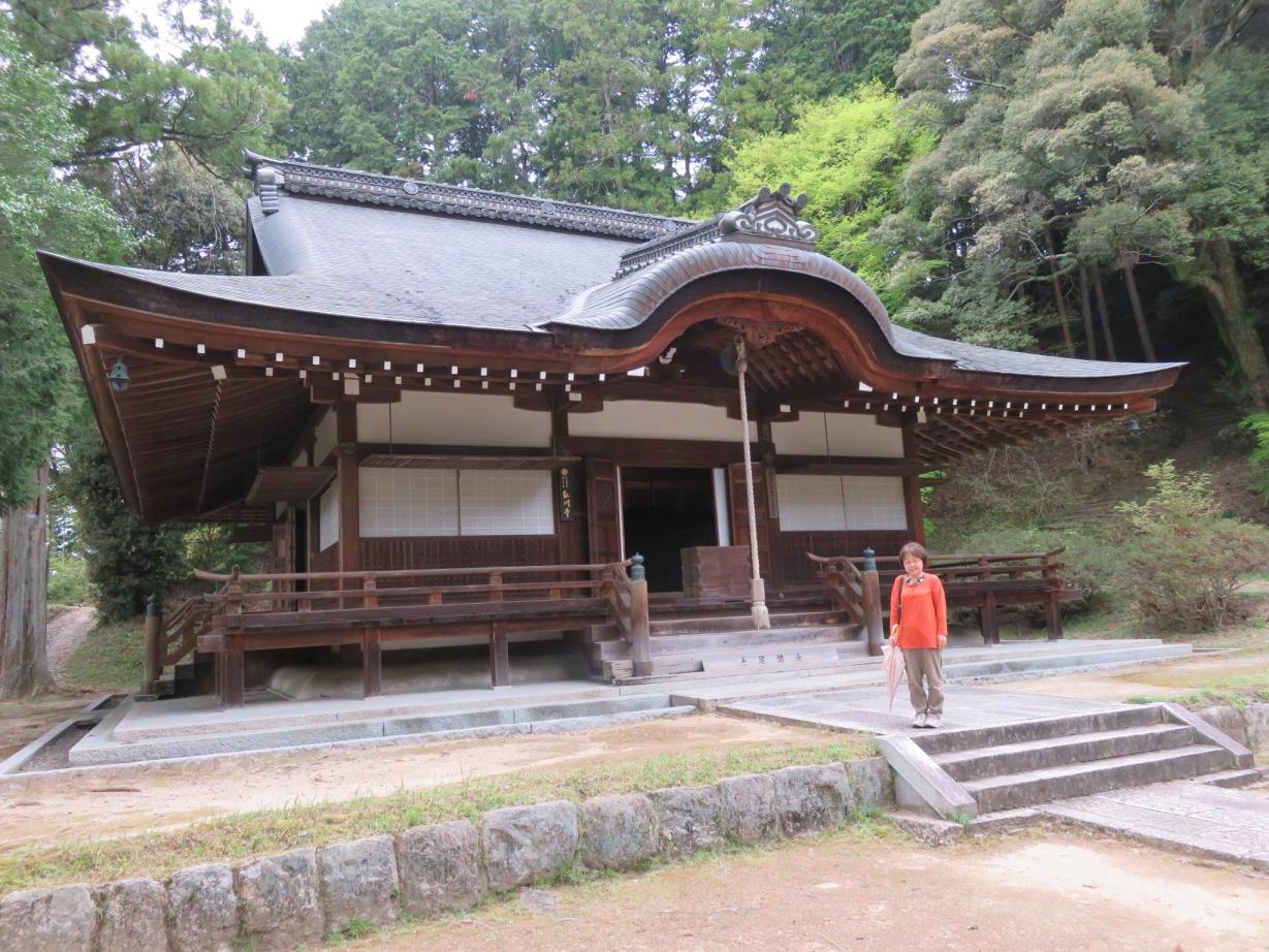 神社境内の休憩所で昼食 味噌汁とお握りの質素な昼食だがうまい