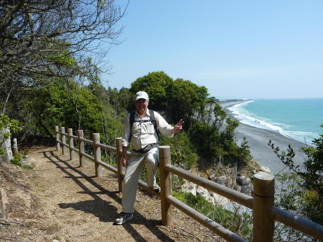浜王子から国42号を横切ると、すぐ熊野灘の海岸に出る 熊野灘の長い砂浜の海岸線は、とっても素晴らしい