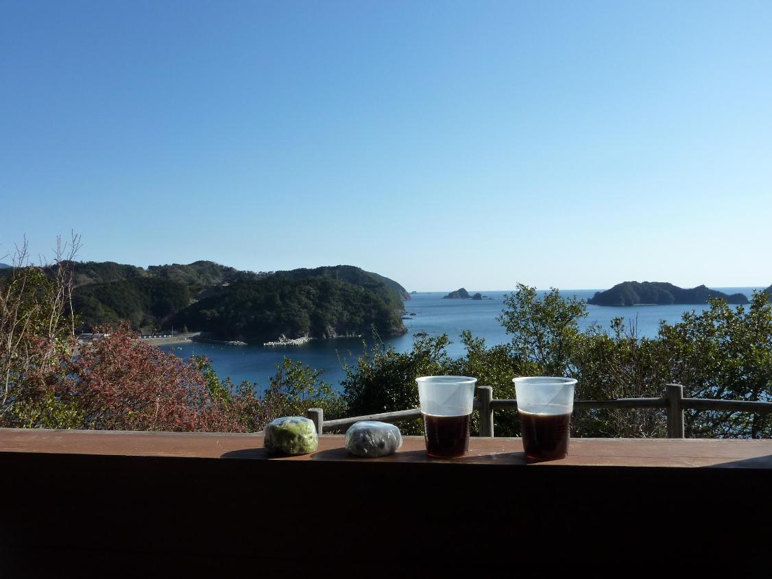 絶景を見ながらのコーヒーと饅頭、最高のひと時です