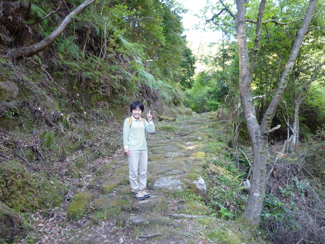 松本峠も苔が生えて感じの良い石畳みが続き、世界遺産の熊野古道歩きを実感出来る