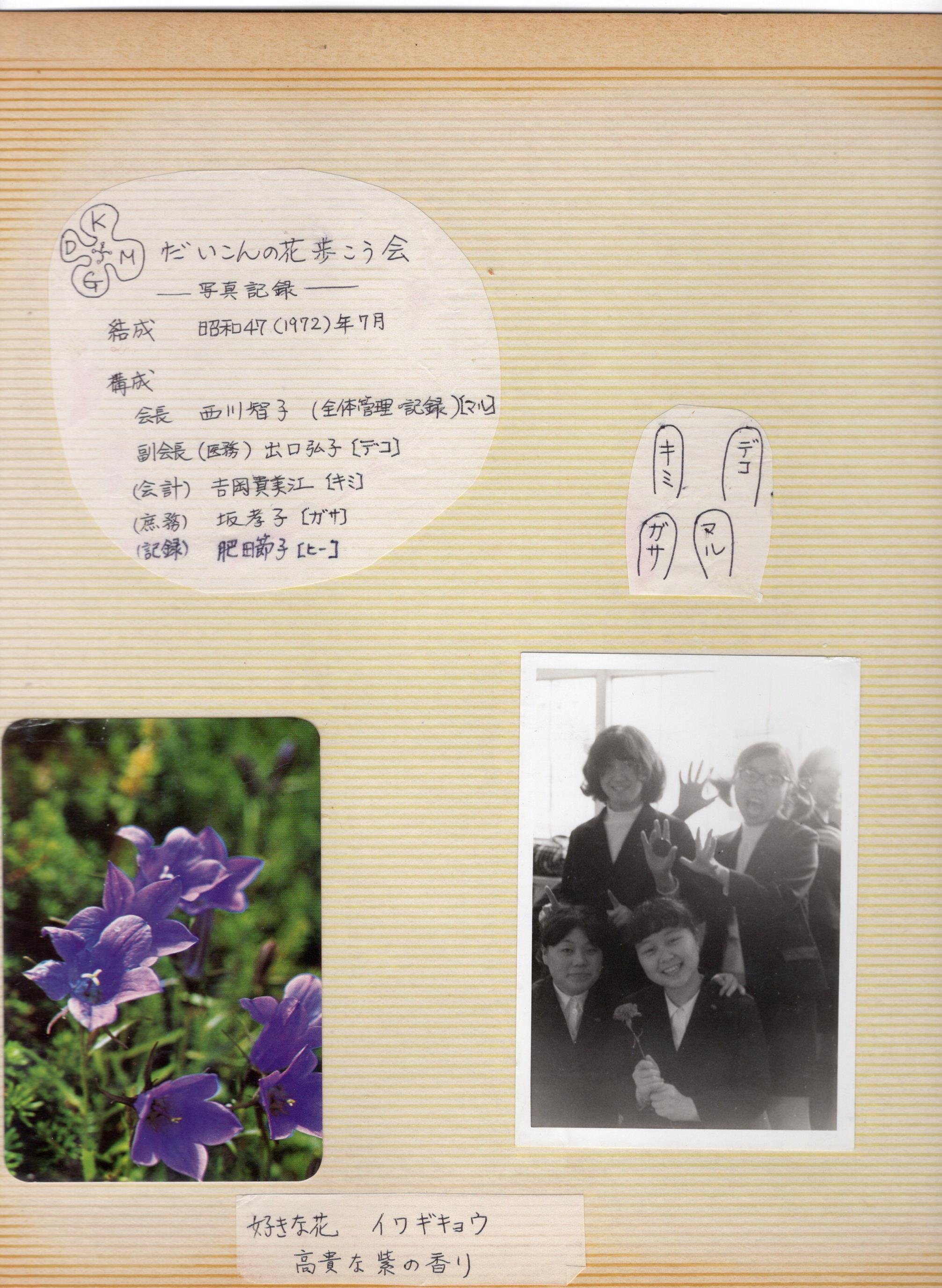 1972年 短大2年 ワンダーフォーゲル、だいこんの花 山行記録