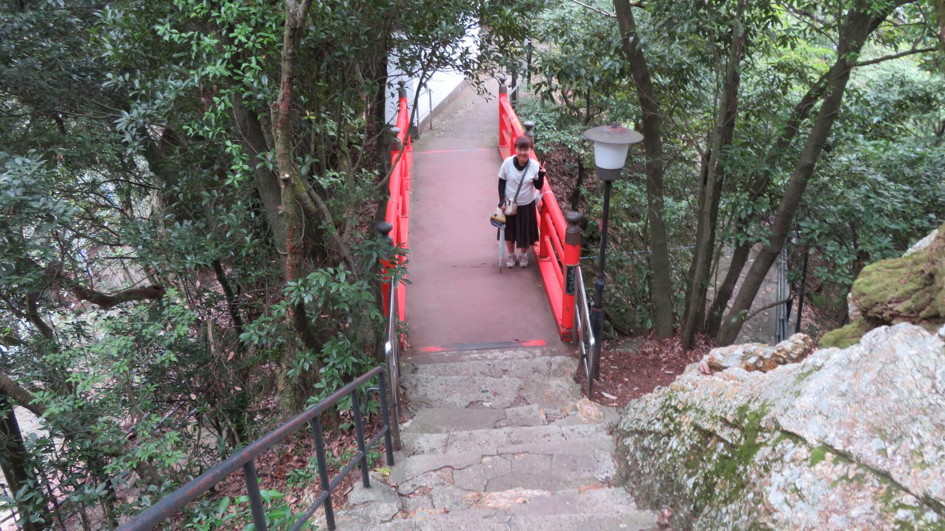厳しい階段が続く 骨折から歩けるようになってはいるが、足は凄く衰えてしまい、さっさと上がれない