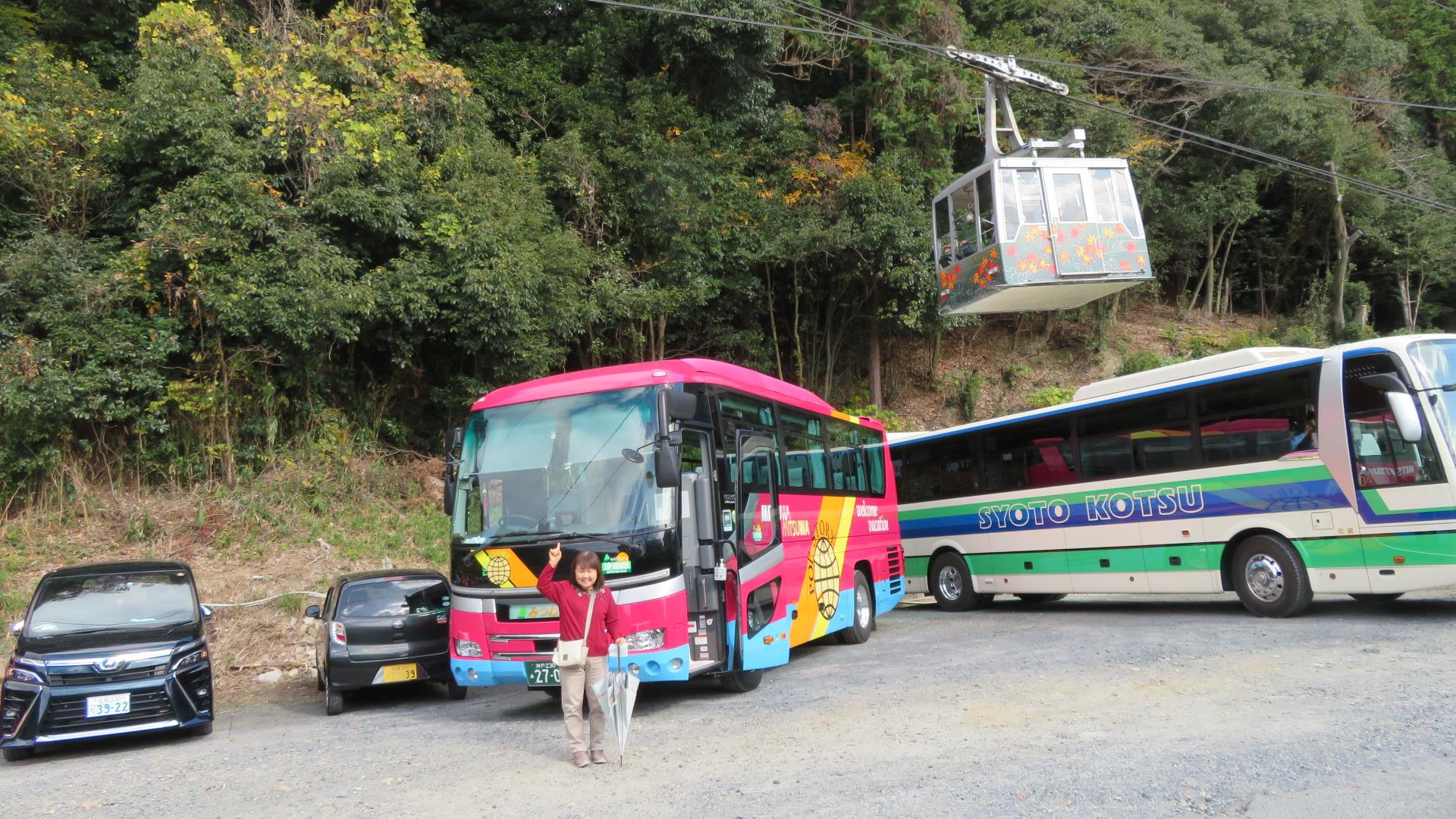 もみじ絵が描かれている、小さな八幡山ロープウェー