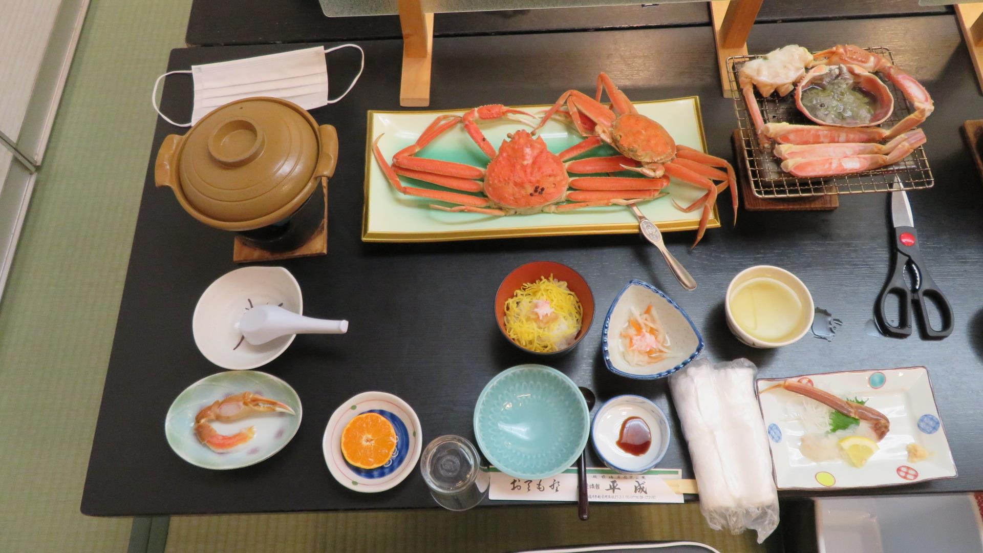今日の昼食は本ツアーの一番メイン 【タグ付き越前がに丸々一杯】と国産活かにフルコース