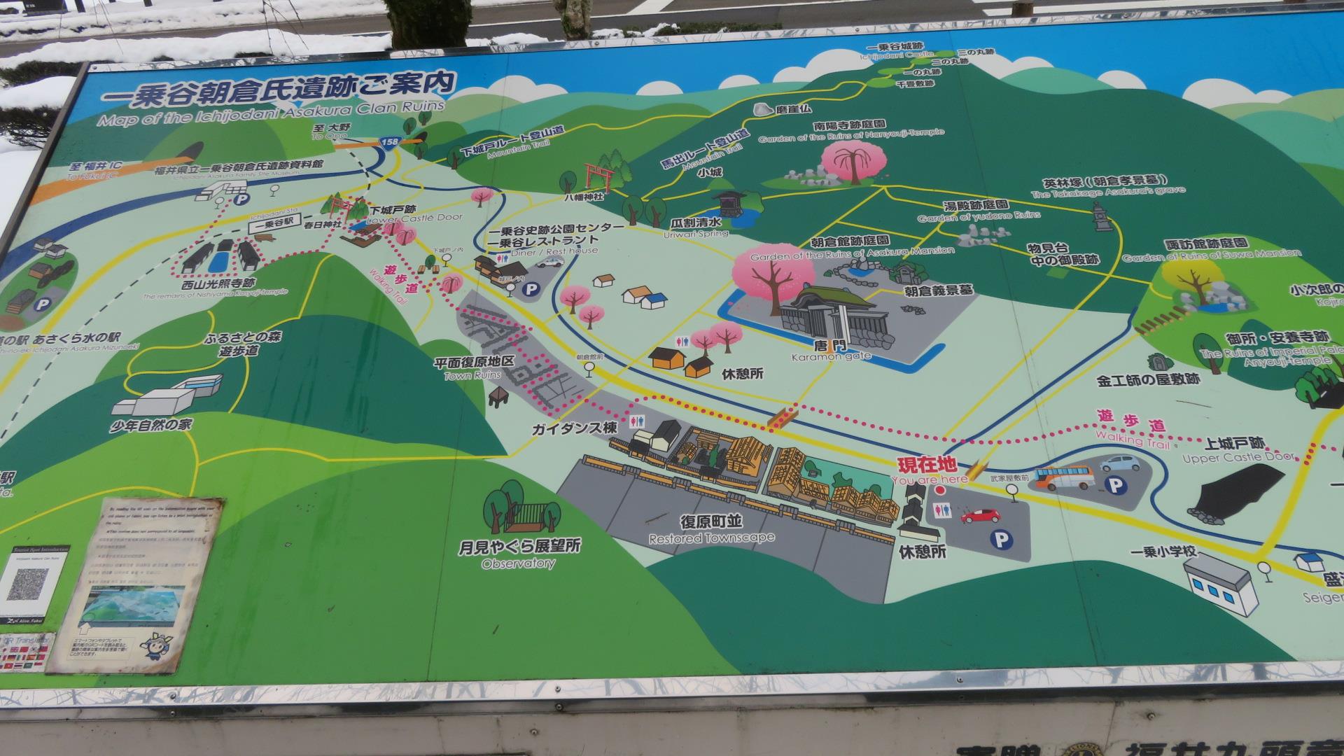朝倉館は、堀や石垣で護られていたようだが、雪に覆われて良く分からず