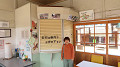 駅舎内にテーブルがあり、コンビニ弁当の昼食 ゆで卵とスープは家から持参