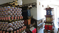 丁度、祭で使ったと思われる車山を、倉庫に収納しようとしていた