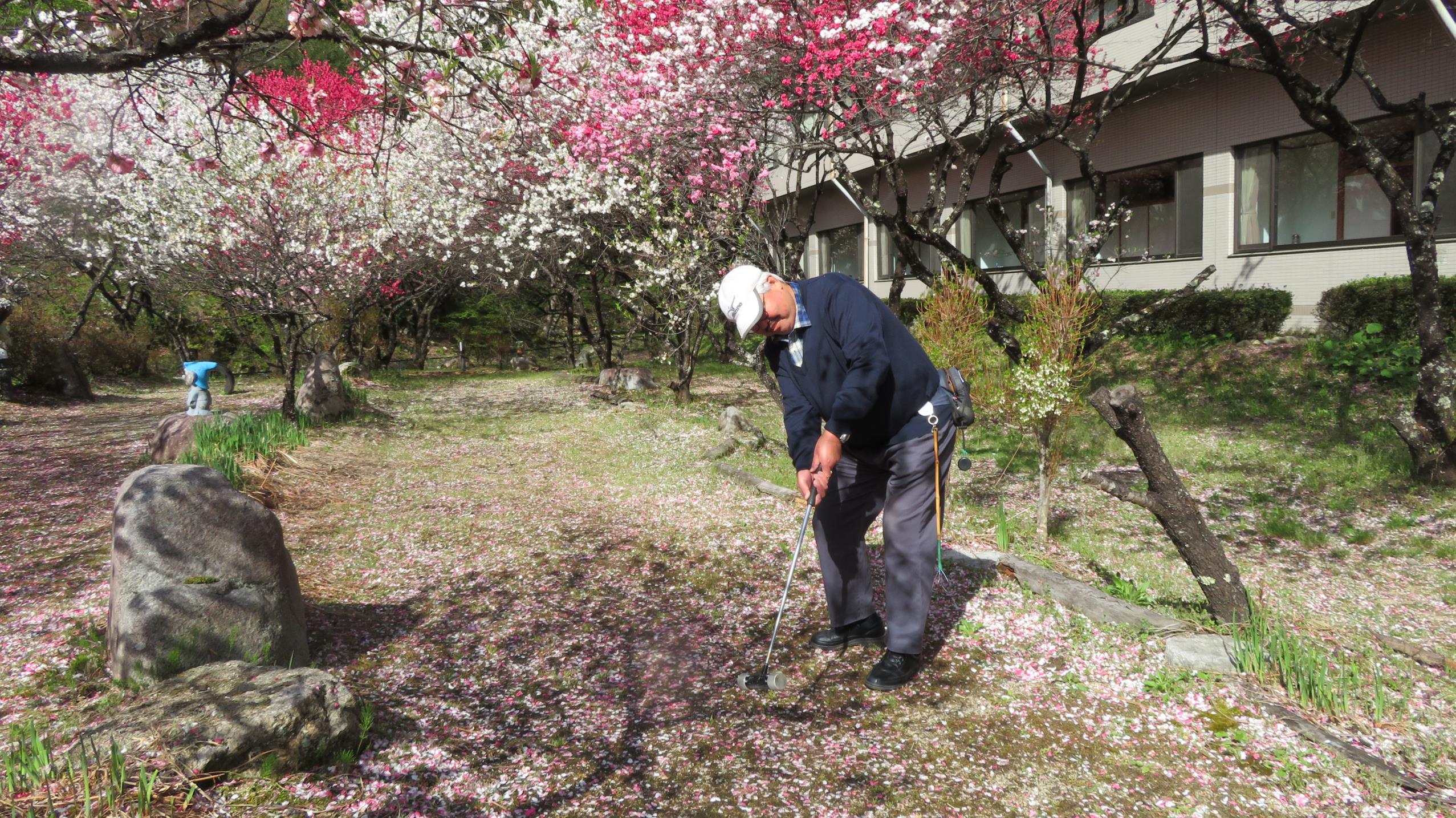 花桃の庭にマレットゴルフのコースがあるので、ちょっと遊ぶ