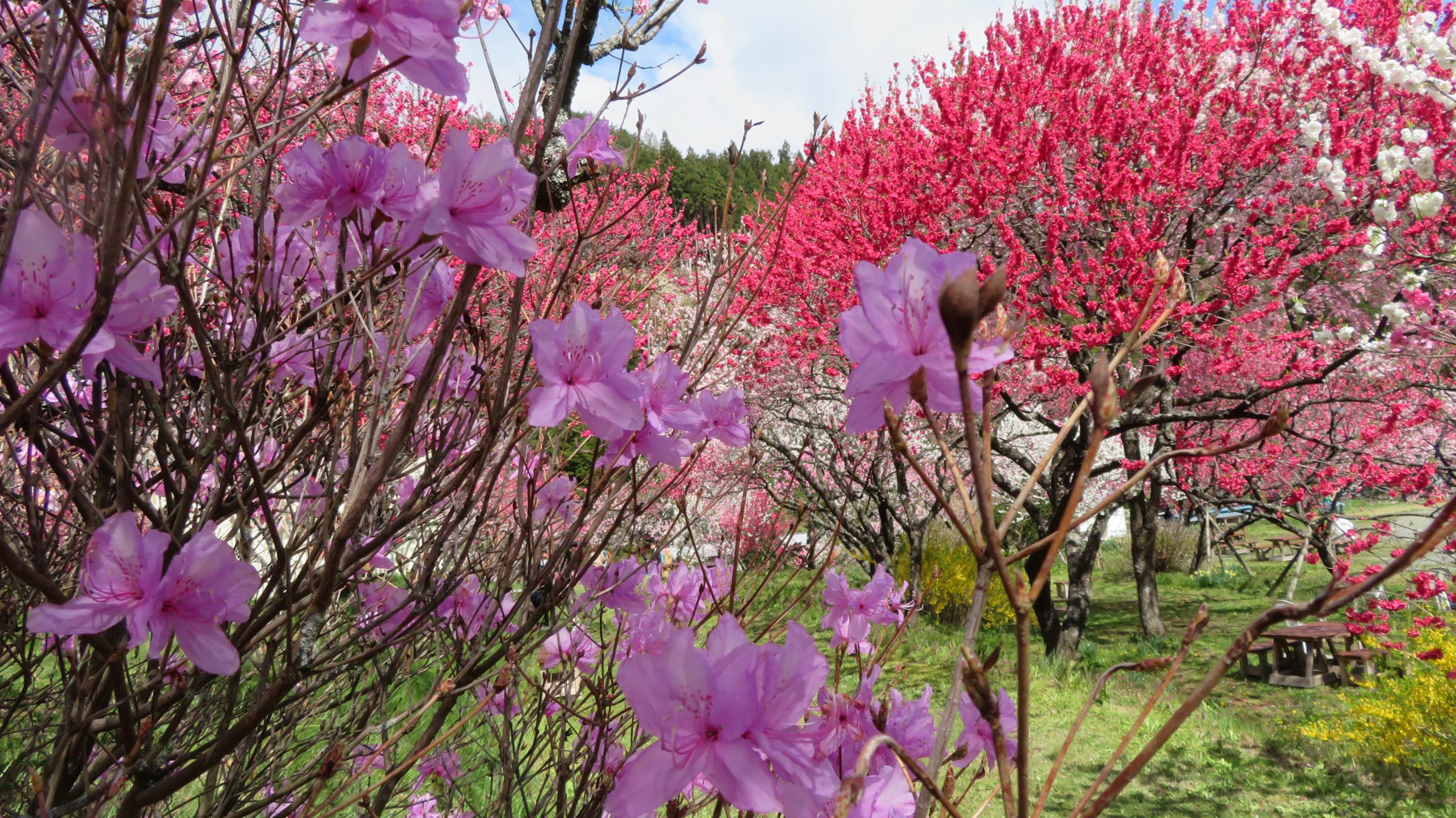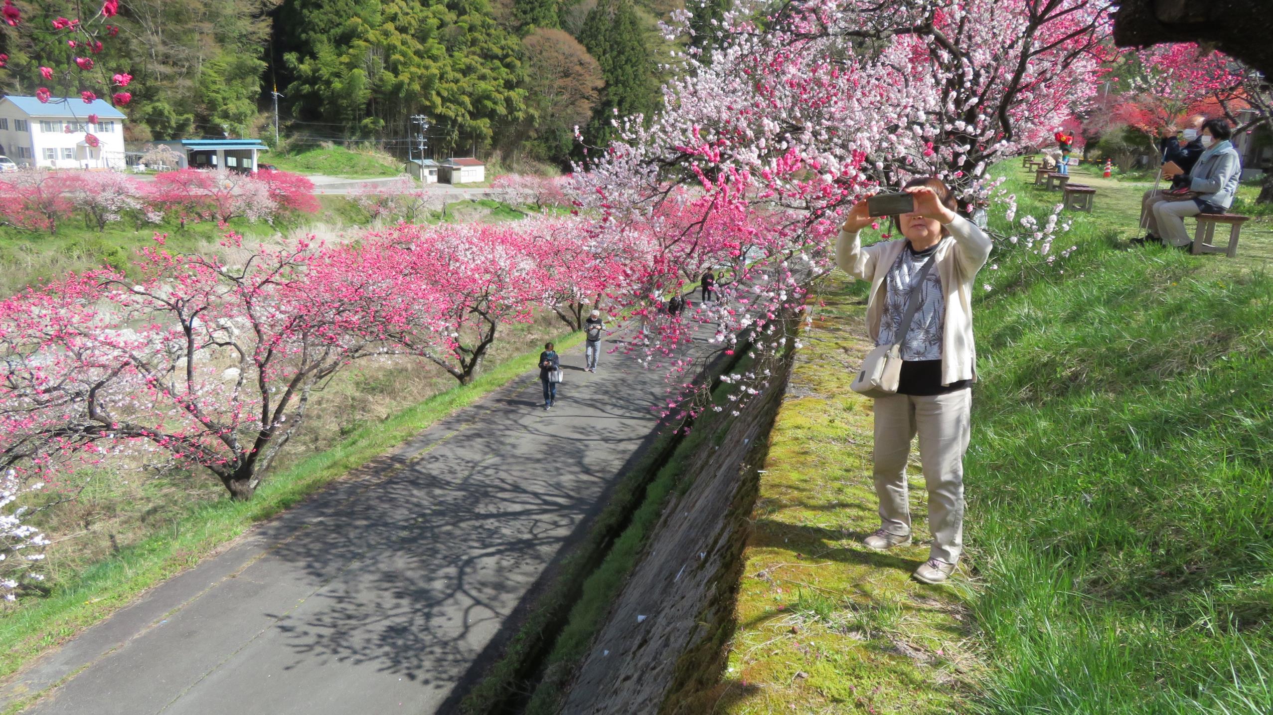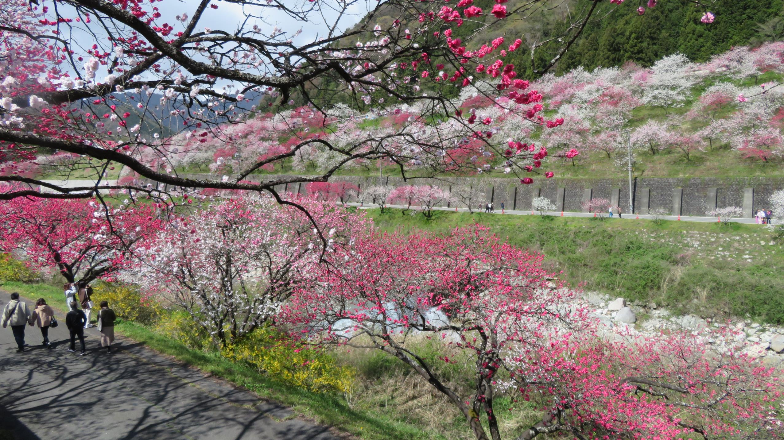 昼神温泉の花桃は満開を過ぎた感じがしたが、花桃の里はこれから満開を迎えようとしている