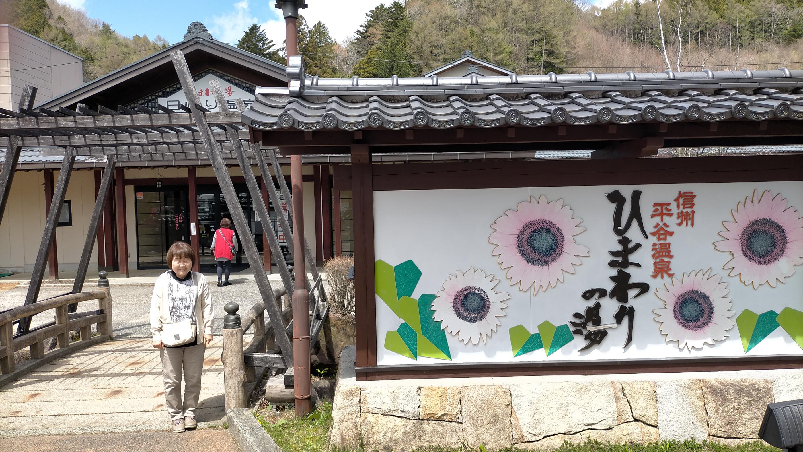 花桃の里へ向かう途中、宿泊した宿・阿智の里ひるがみが、花桃の中にキレイに見えた 昼神温泉の宿の中で、花桃が良く見れるのは、この宿が一番と思える
