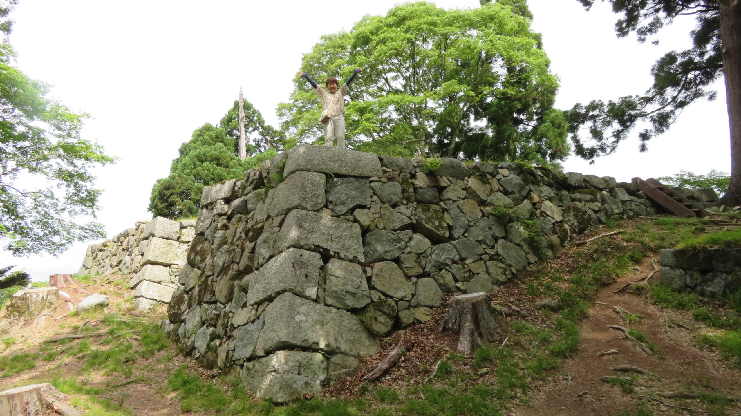 天守台に立つと万歳のポーズをするのが、癖になったようだ