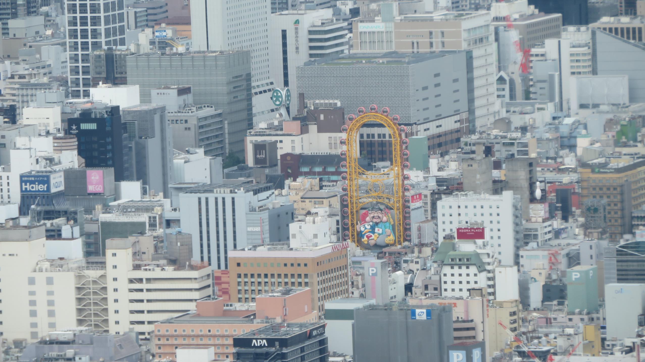 60階の展望台の入場料は、2人で3600円と結構高いが、大阪の全景を見渡せれる