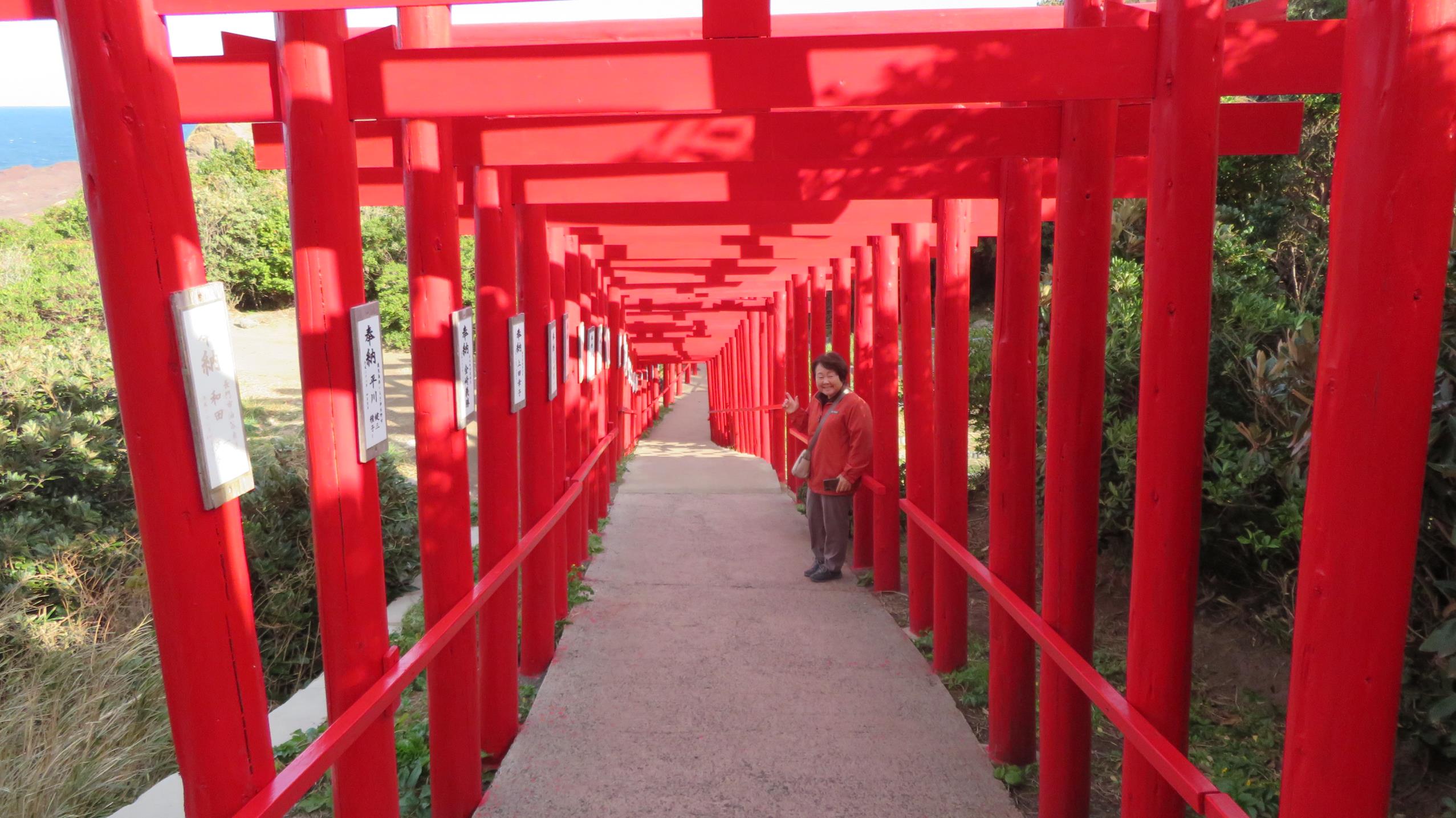 1955年白狐のお告げにより創建された ここは龍宮の潮吹のある名勝だが、潮吹だけでは観光客が来ないので、見事な鳥居の景色を造って、村興ししたのでは