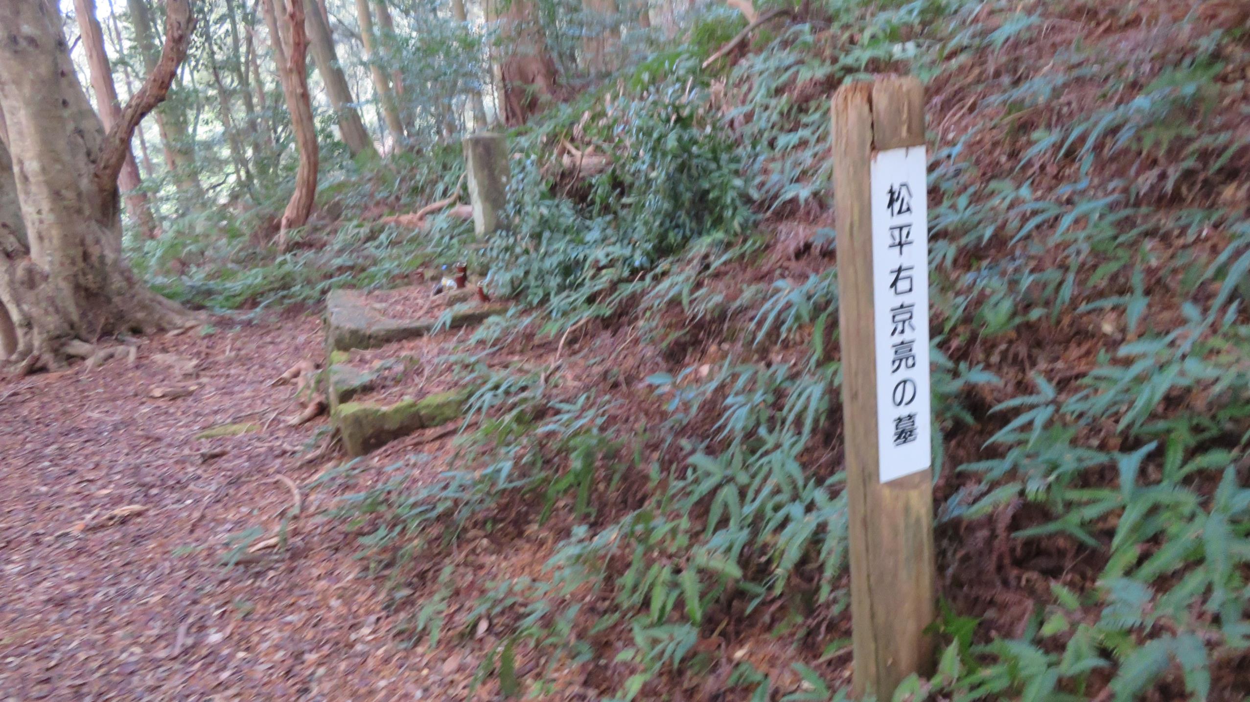 墓の直ぐ隣の大手道に、右京亮の戦死した場所の看板あり この辺りが主戦場だったと思われる
