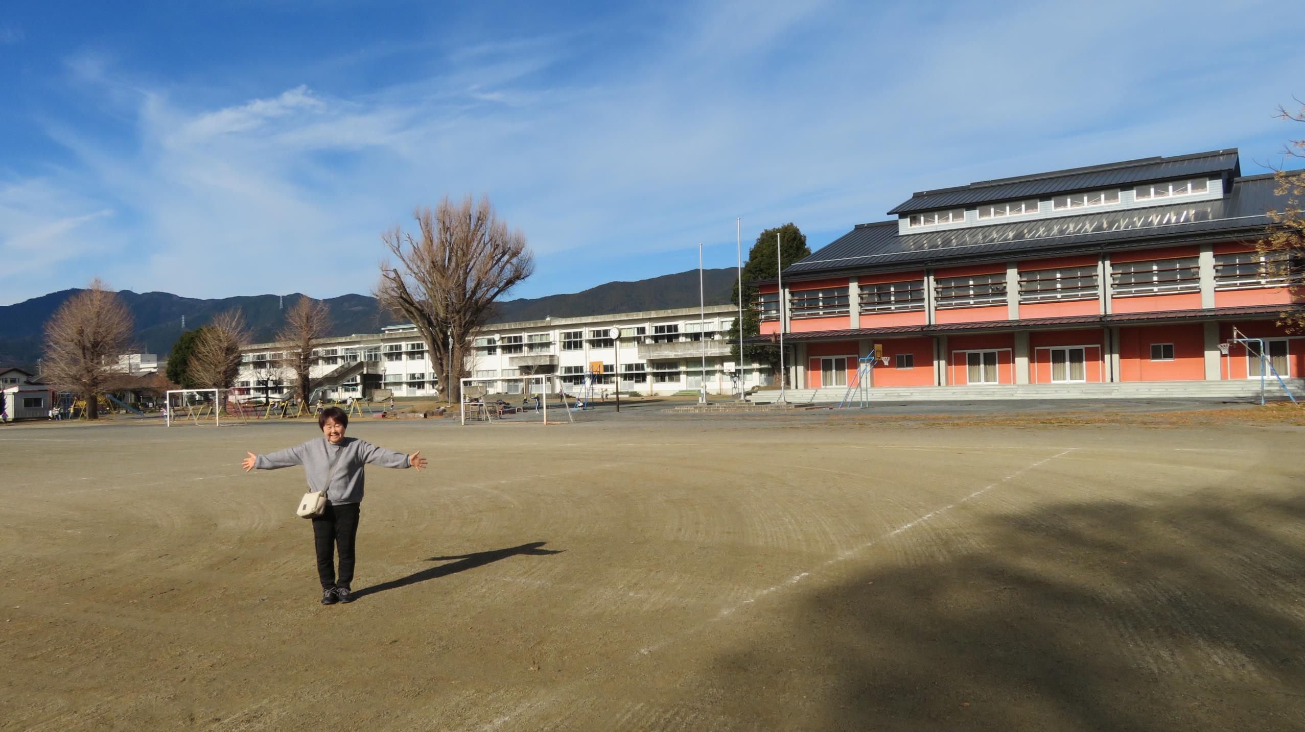 小学校のグラウンドが本丸跡 この小学校、最近では珍しく全然閉鎖されていなくて、誰でも自由に入れる
