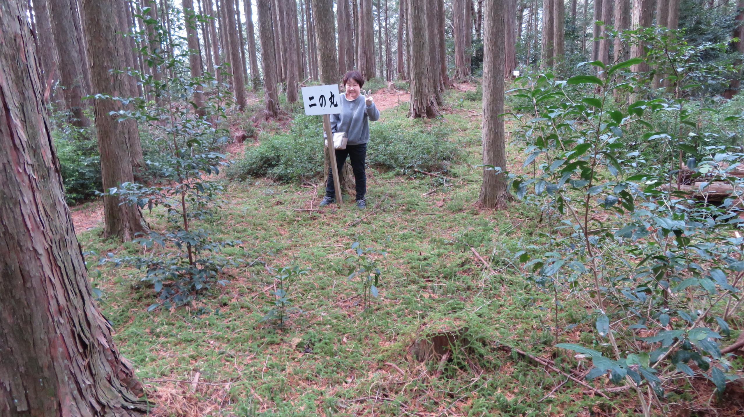 二の丸も広い削平地だが、看板が立つだけで城郭の面影は全然ない