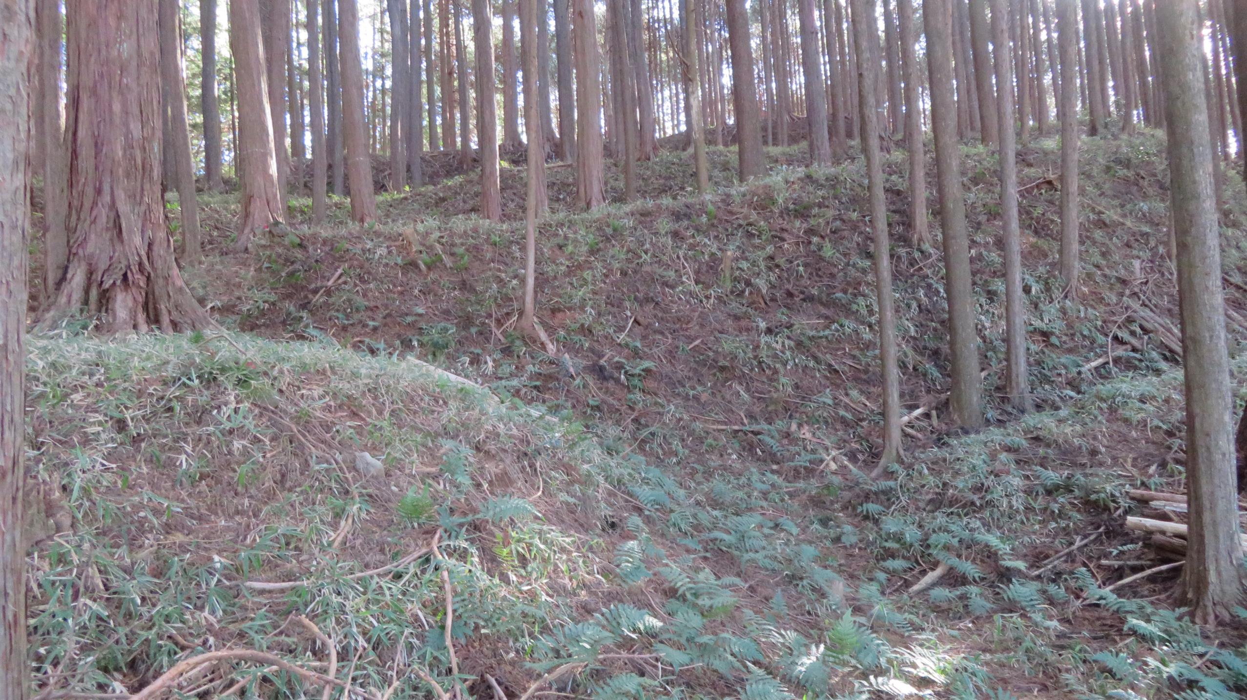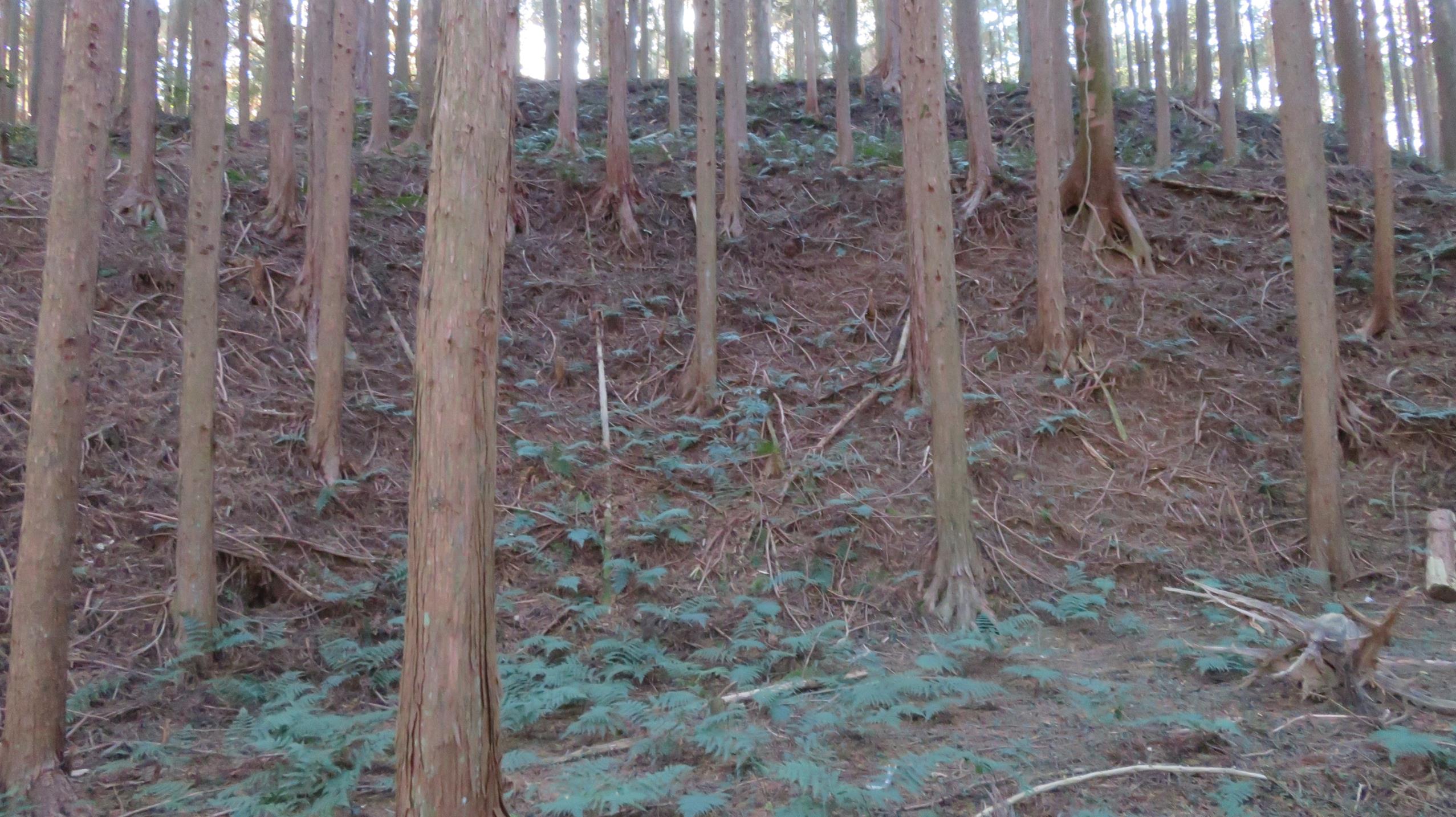 @東曲輪の北側を取り巻く堀と土塁 この堀と土塁はぐるっと東曲輪の下を取り巻いている