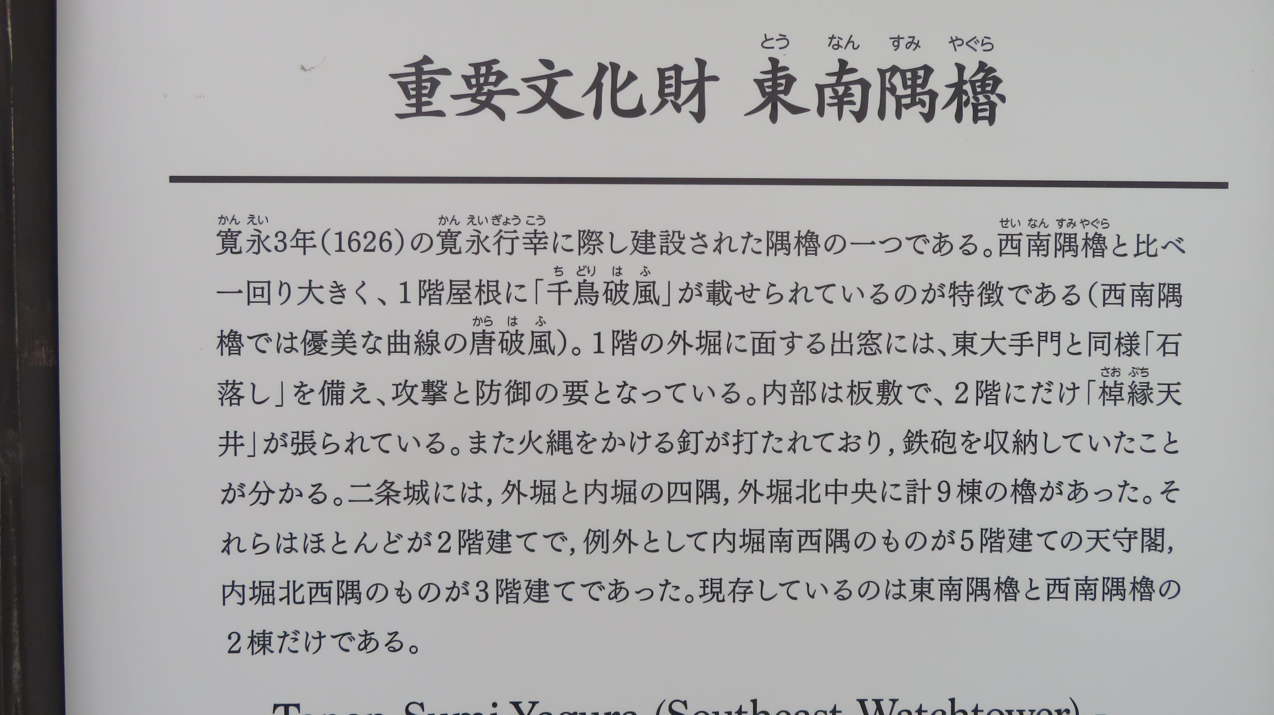 二条城の天守閣は、伏見城から移設さけたもの、と説明ある