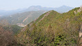 向こうの山が本丸跡 鐘撞堂跡からいったん降りて、また登ることに