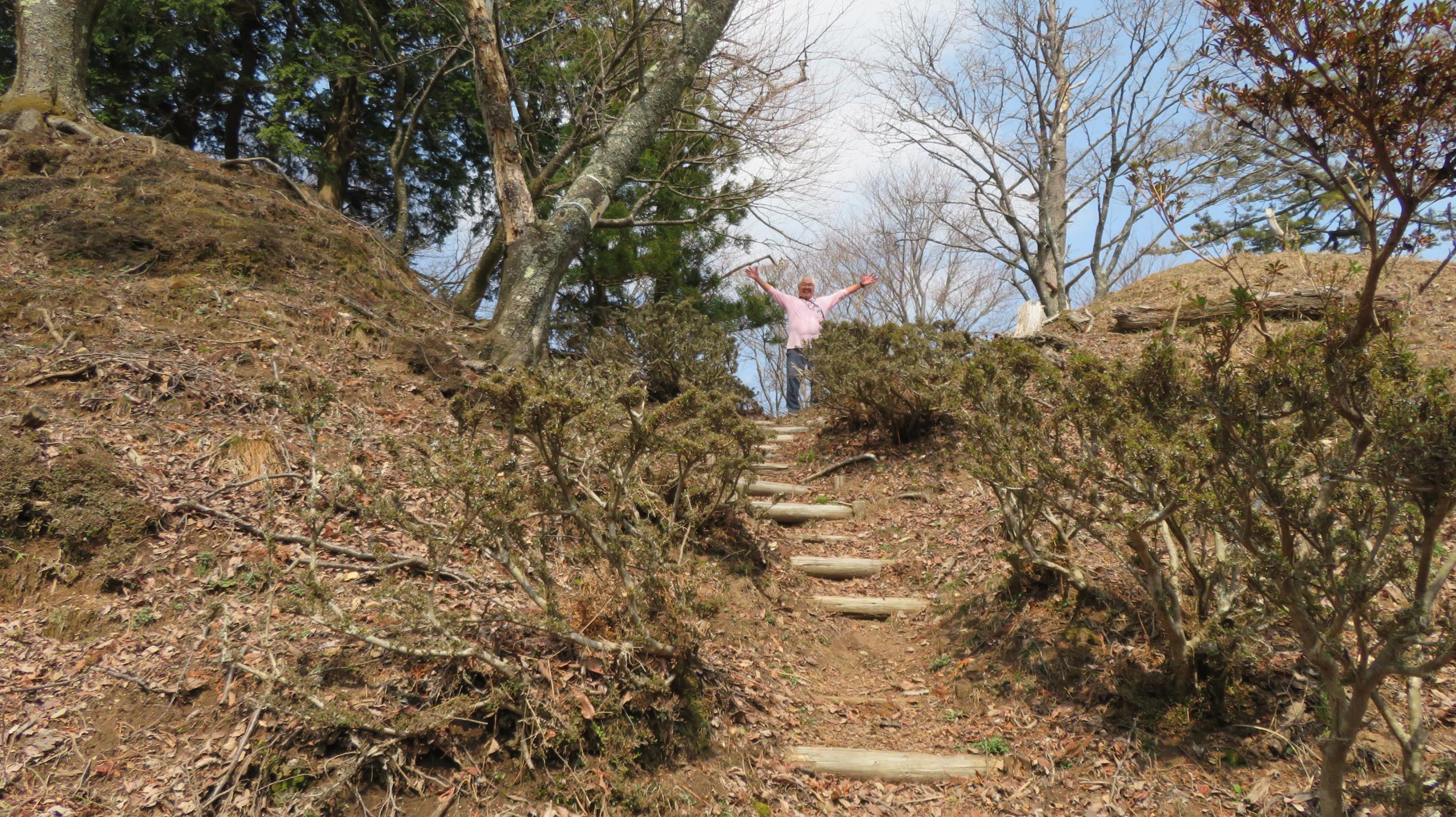 9:55 南曲輪に到着 南曲輪の上が鐘撞堂跡で、さらに本丸跡へと続く