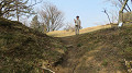 大きな堀切跡か自然の谷か? 中々感じ良い景色だか、えらくて死にそう