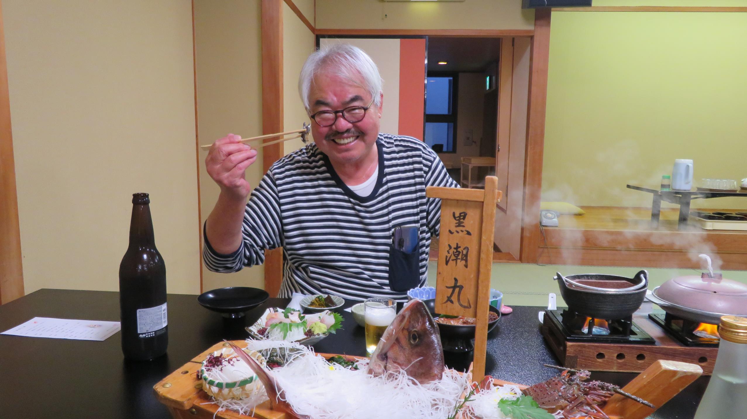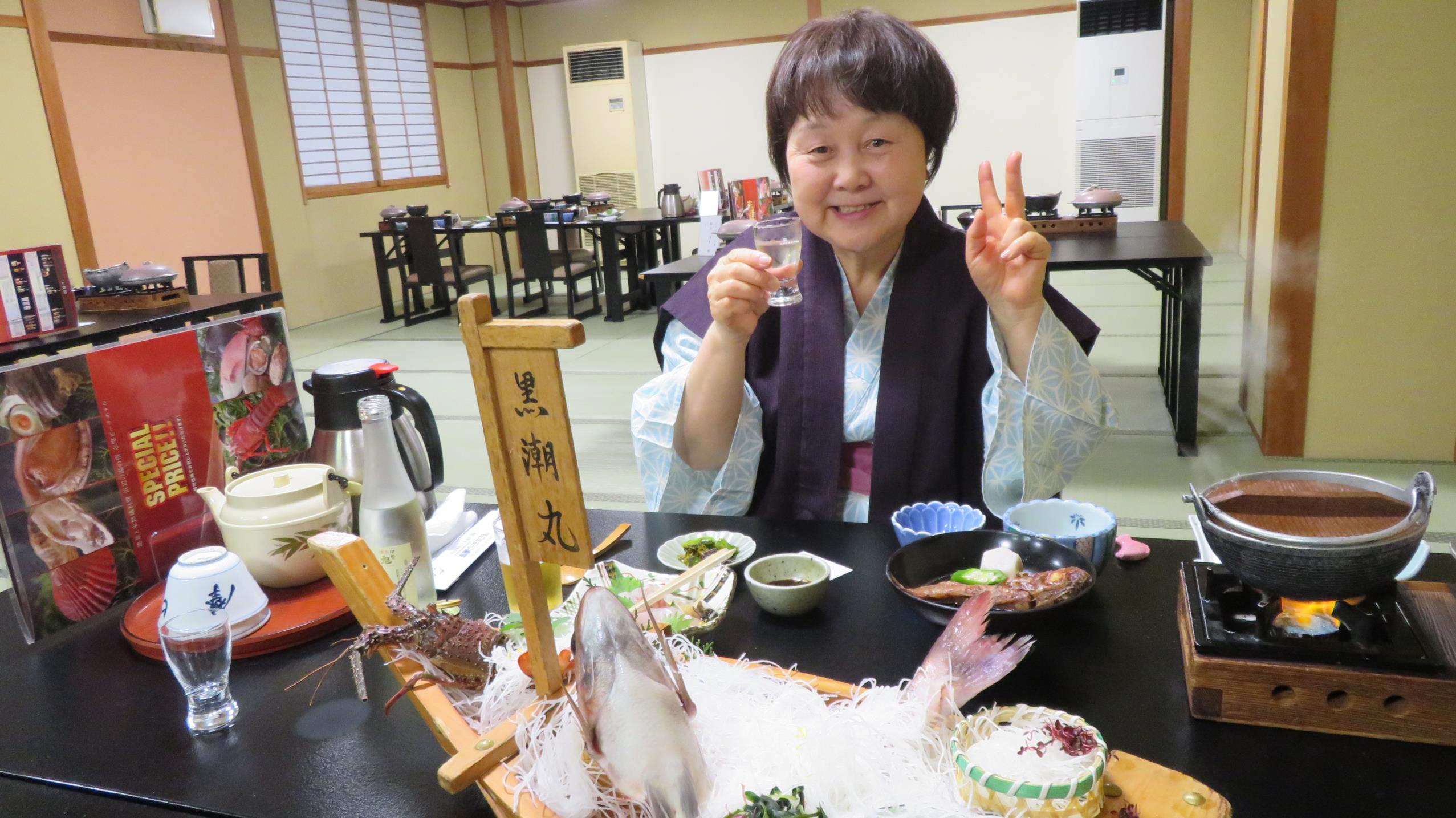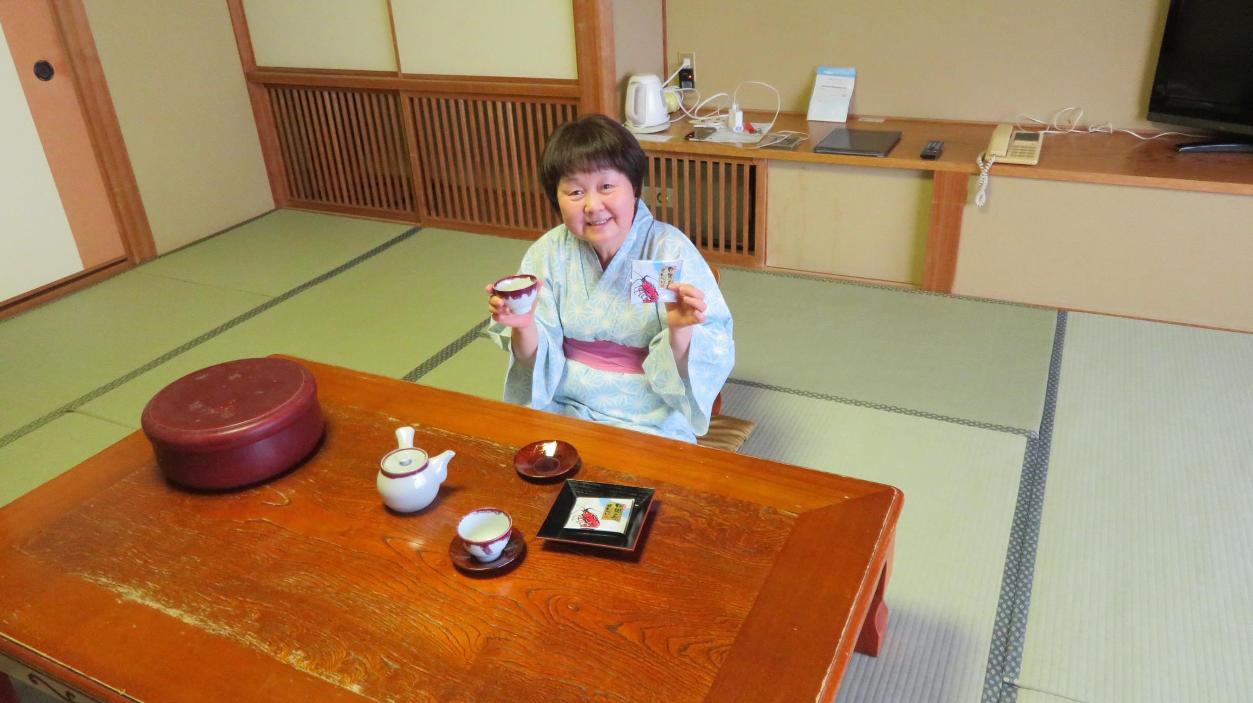 広い和室が感じ良い 入浴後は、女房は伊勢えびせんべいでお茶