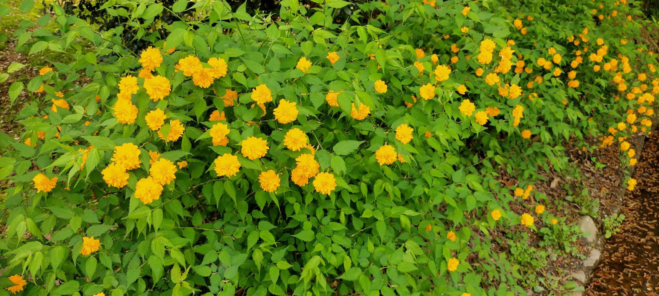 遊歩道に咲く八重桜