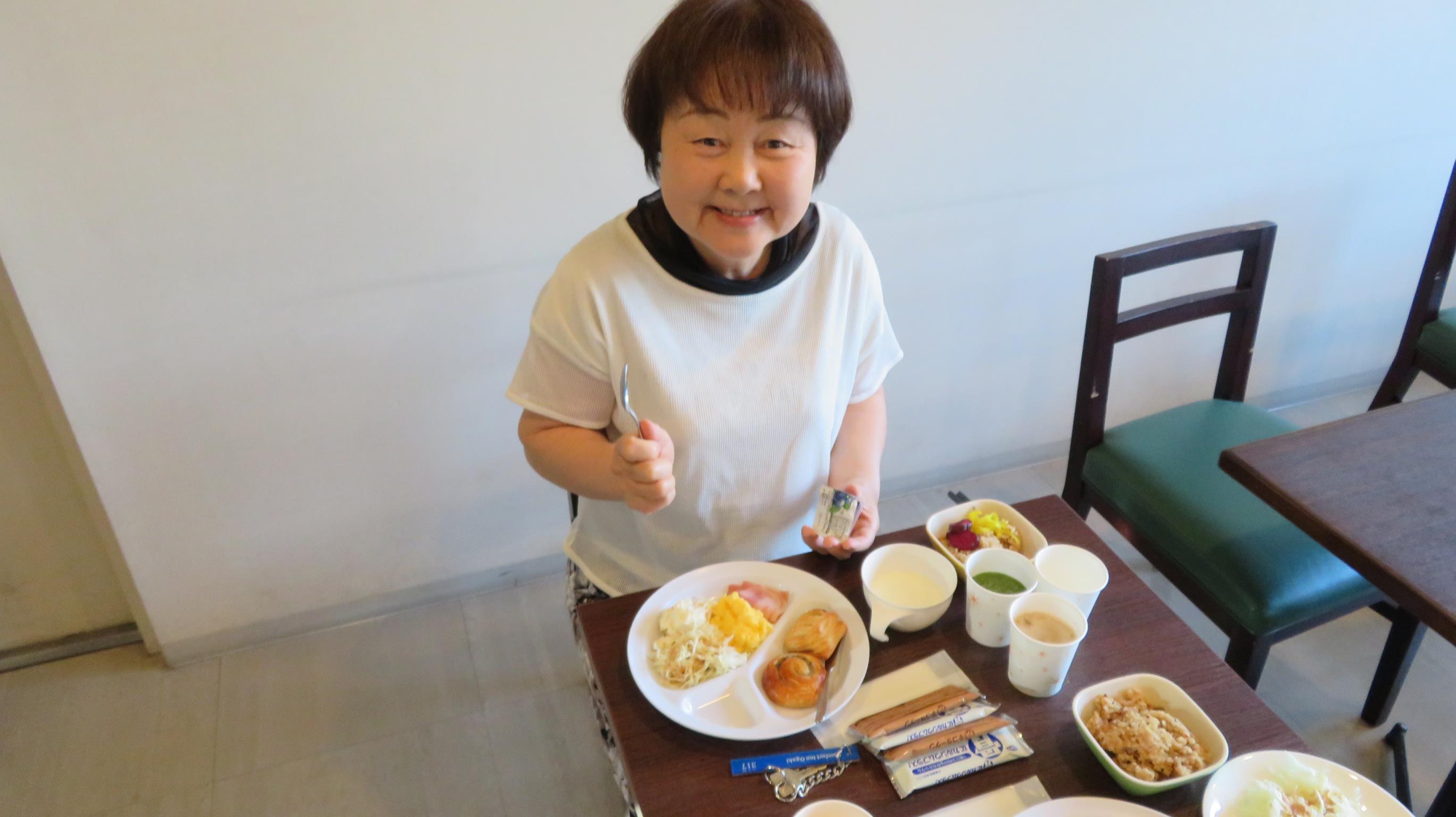 ホテルの無料朝食 食材は少ないが、バイキングスタイルで、自由に取れる