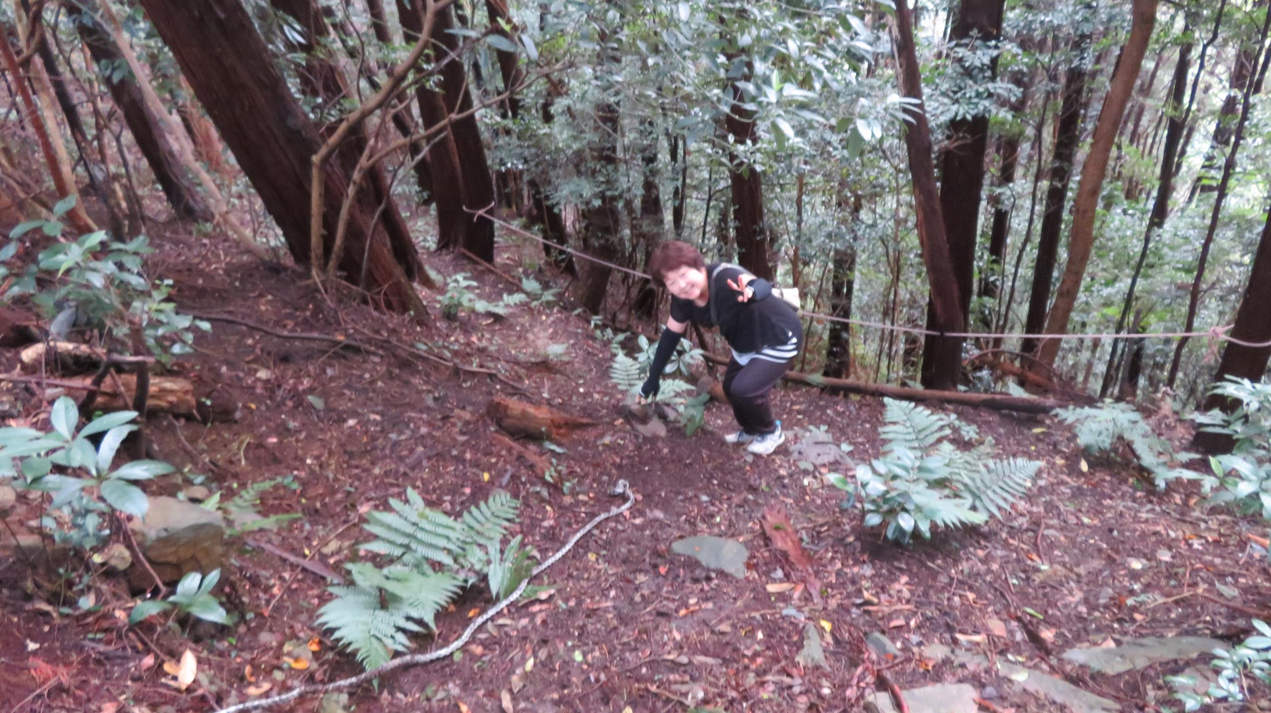 本曲輪の虎口 雨で濡れたロープは泥だらけで、あまり掴みたくない