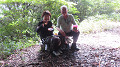 三日月堀で記念撮影 10月上旬でも夏は終わっていない 蜘蛛の巣・やぶ蚊で大いに悩まされた
